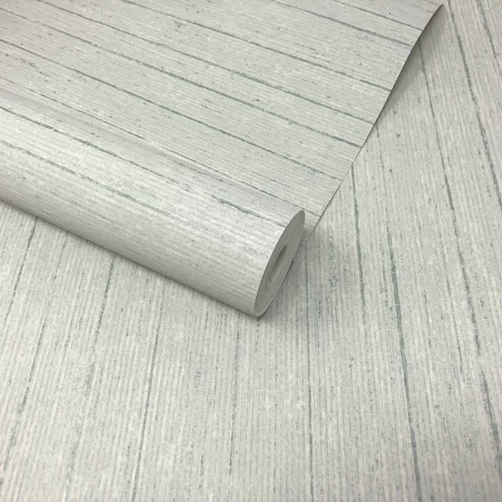 Like an intricate hand-spun textile, this textured wallpaper brings a soft intrigue to walls garnished in shades light grey and deep sage.